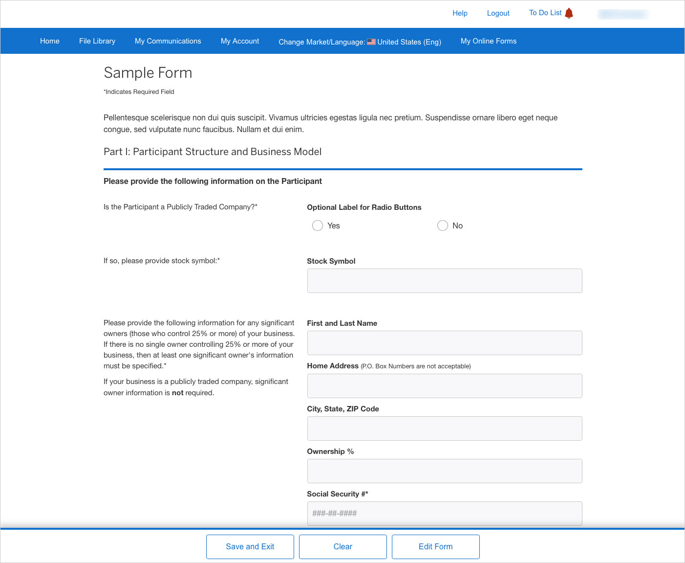 After determining the types of questions and form formats, it was important to integrate UltraBank's specific styling of form elements. Across all branches of their business, UltraBank employs a content-styling system to ensure form component consistency. Since the users of this tool are financial professionals and not designers, every form created must be within branding standards.