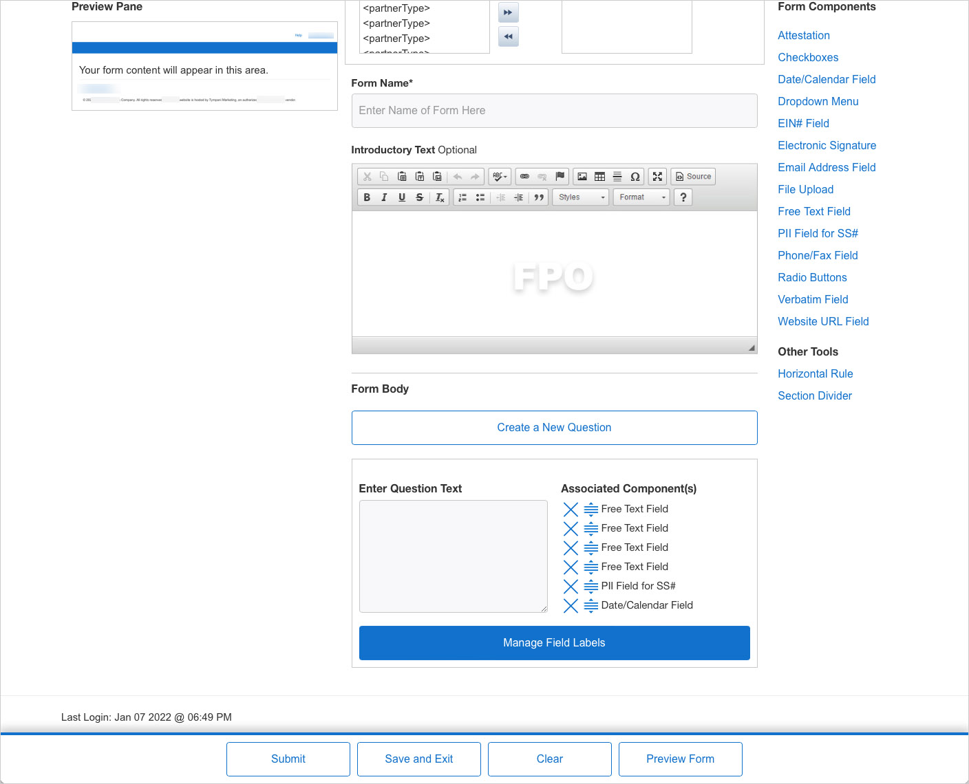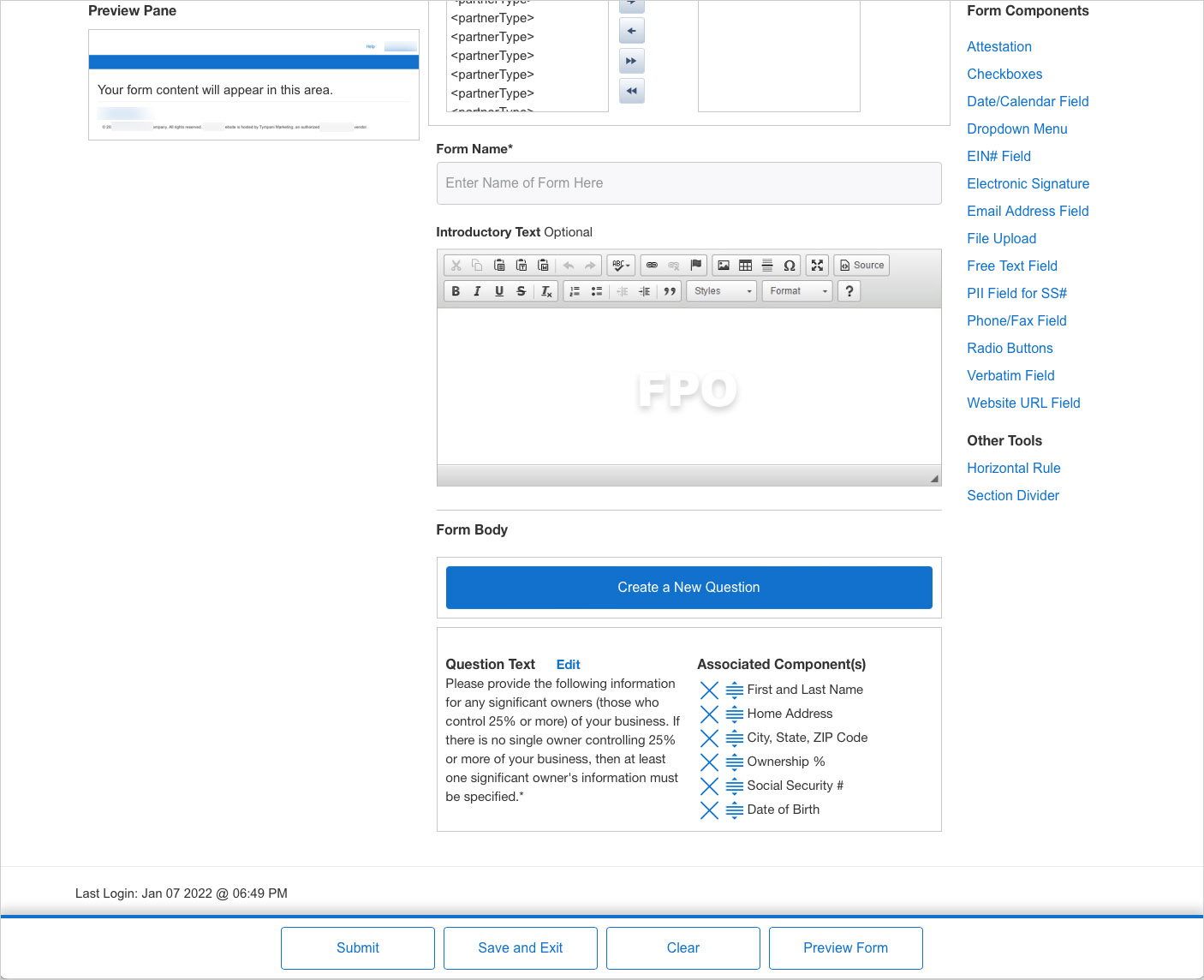 An UltraBank administrator has complete control of users, content and reporting. Most recently, they requested a form-building tool be added.