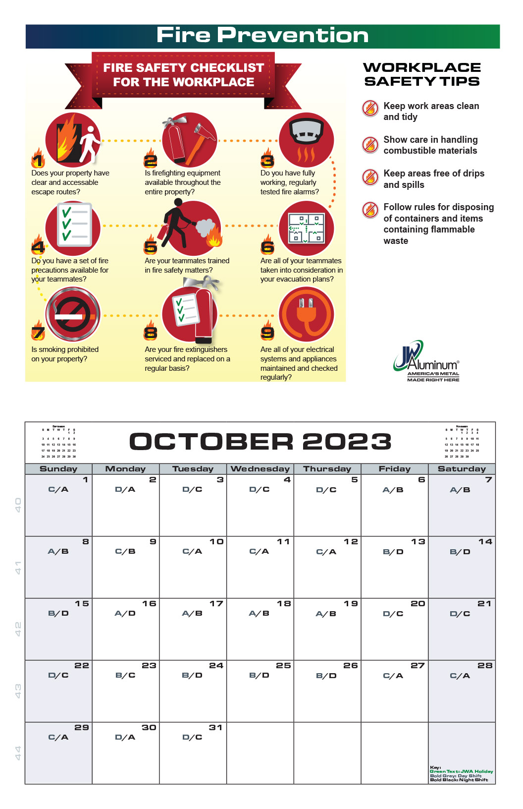 Although officially called the JW Aluminum Safety Calendar, this document serves another very practical purpose, displaying which shifts work each day.