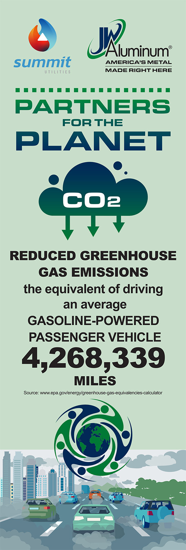 Press release: JW Aluminum Completes Multiple Energy Efficiencies: Company to Reduce Greenhouse Gas Emissions Equivalent to More Than 4 Million Miles Driven.